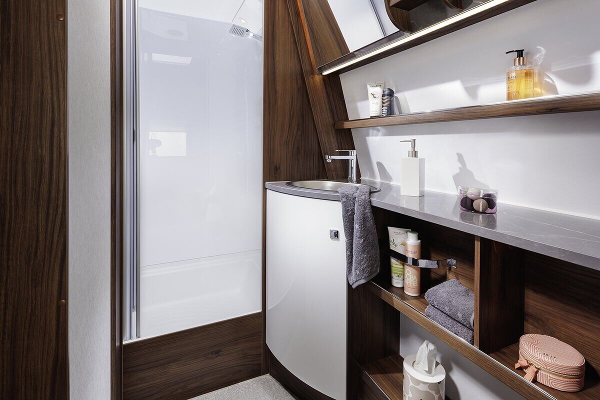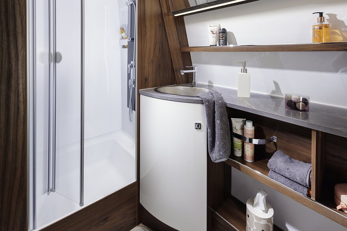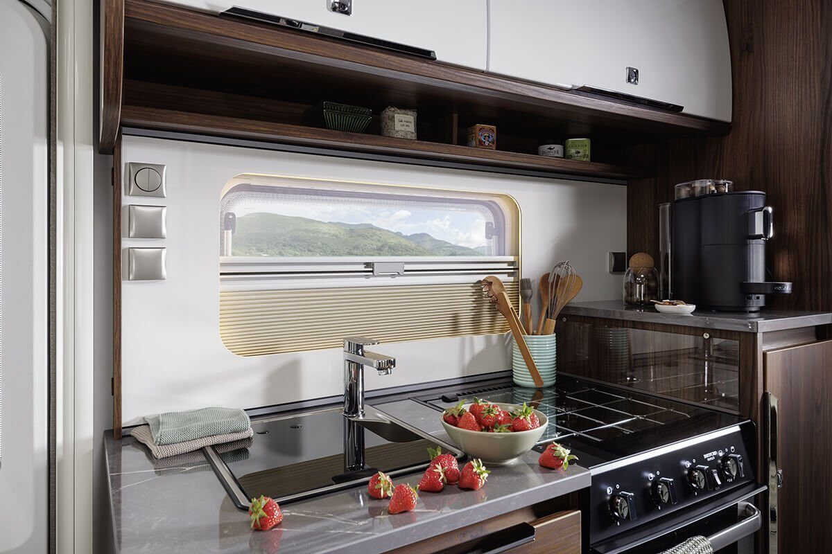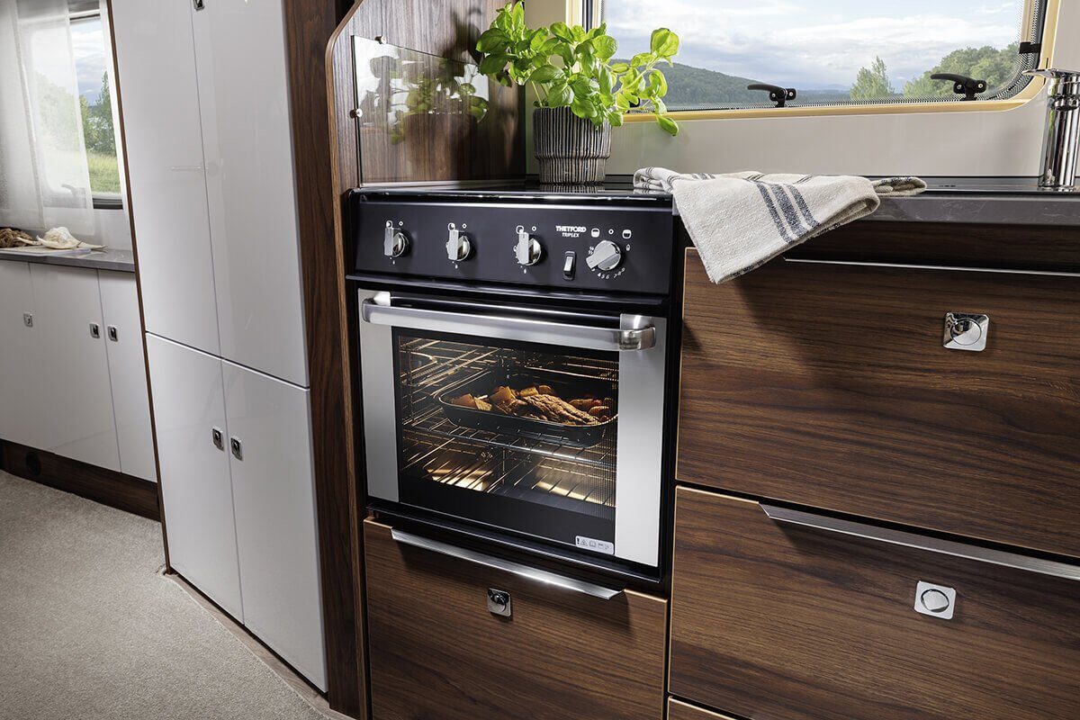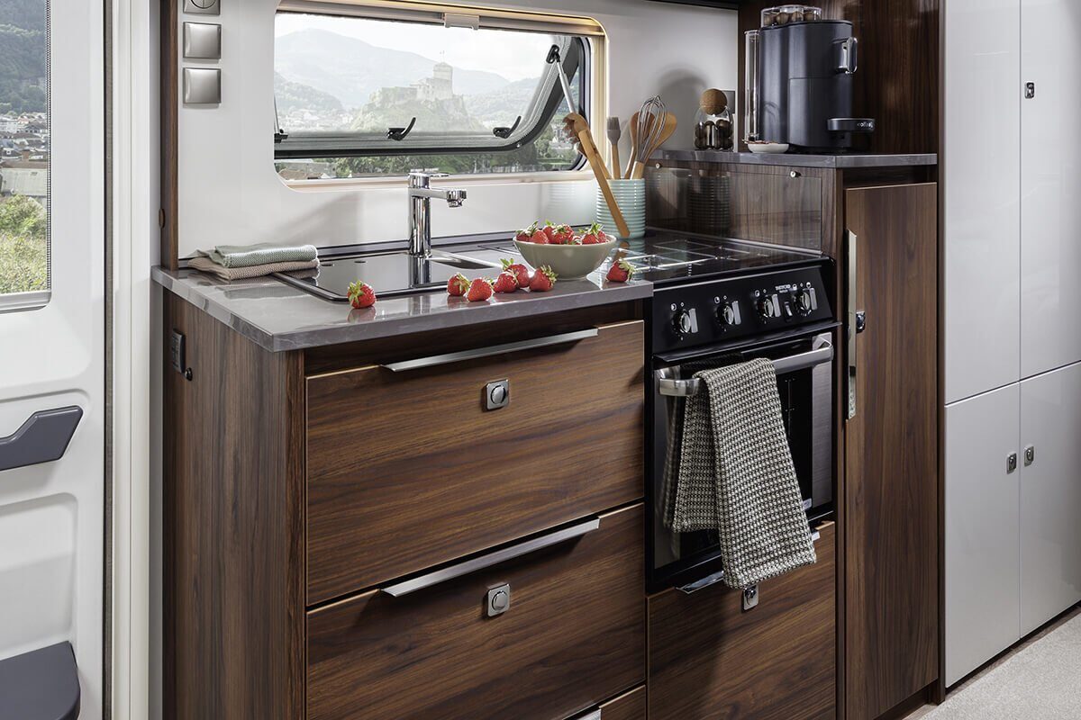 Moderne apparaten, waaronder de nieuwste generatie ovens en slim-tower koelkasten, maken koken een genot. Ervaar ultiem comfort en luxe met de Fendt Diamant caravan tijdens uw reizen.