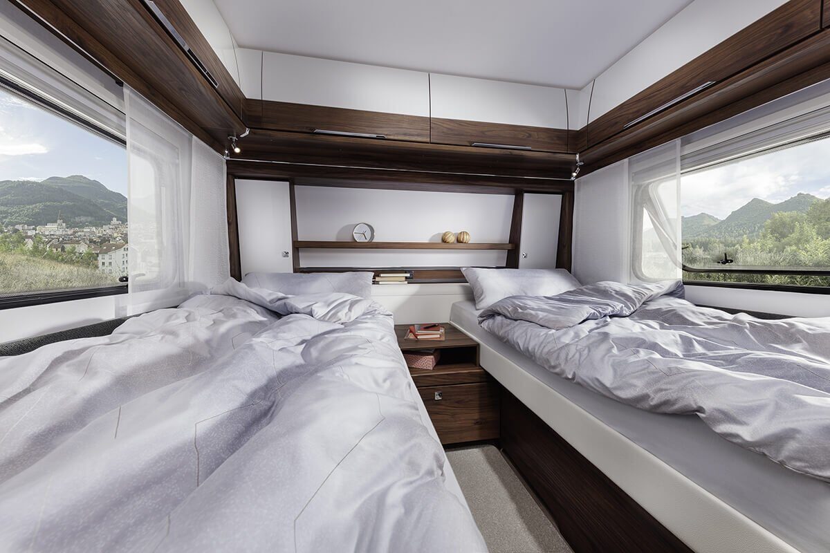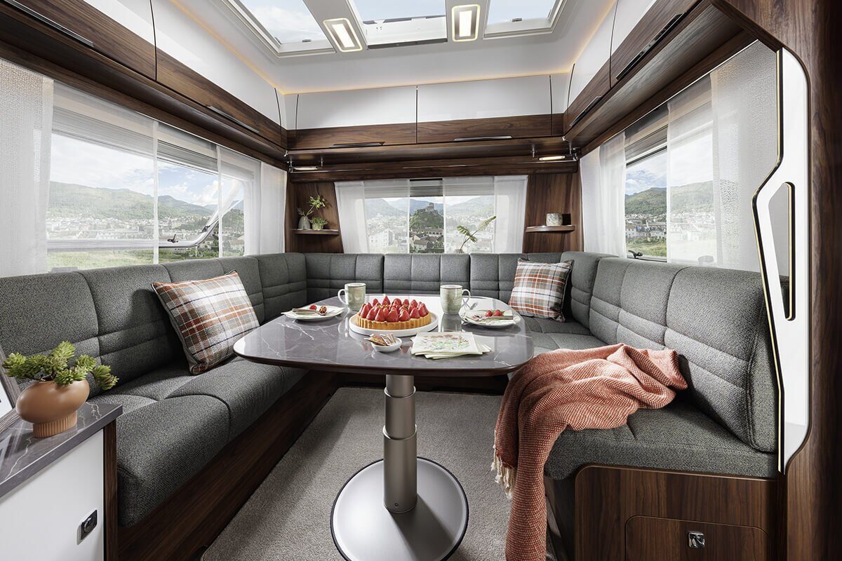 De zitgroepen in de Diamant bieden uitzonderlijk zitcomfort dankzij binnenvering en in hoogte verstelbare hoofdsteunen. Het Skylight panoramische dakluik vult de leefruimte met natuurlijk licht, terwijl geïntegreerde LED-verlichting ‘s avonds voor de juiste sfeer zorgt. Geniet van een goede nachtrust op bedden met 7-zone klimaatcomfortschuimmatrassen.