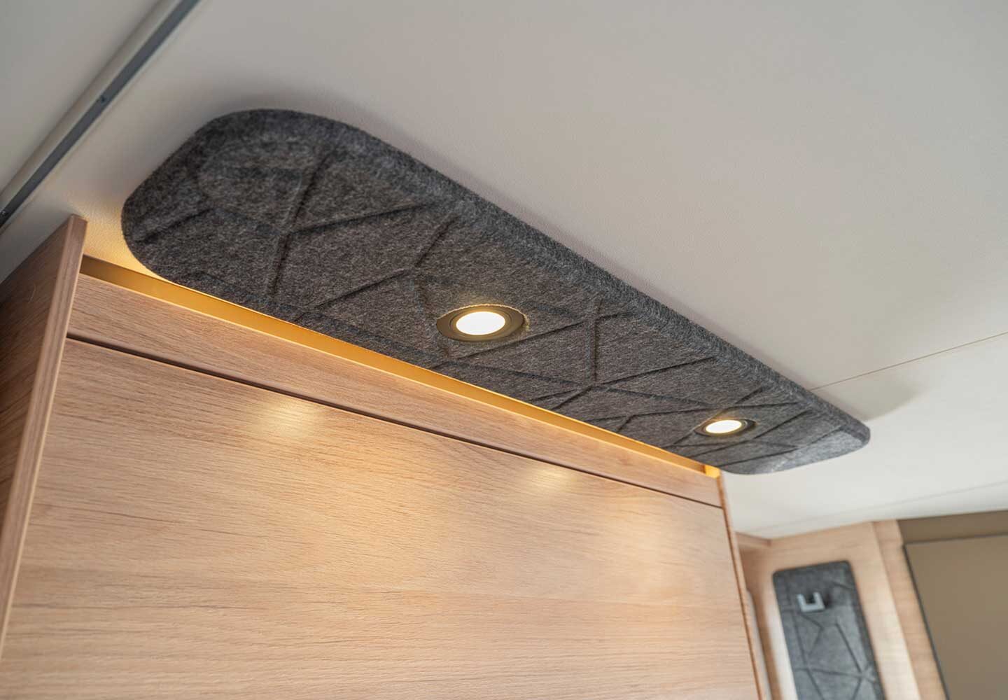 Aan boord vindt u alles wat u nodig heeft: hordeur en combirollo’s, vaste 45 liter watertank, ringverwarming, groot dakluik/Heki, 3‑pits kooktoestel met RVS-spoelbak en dimbare LED-sfeerverlichting.