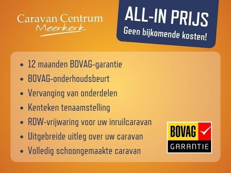 - RDW-vrijwaring voor uw eventuele inruilcaravan